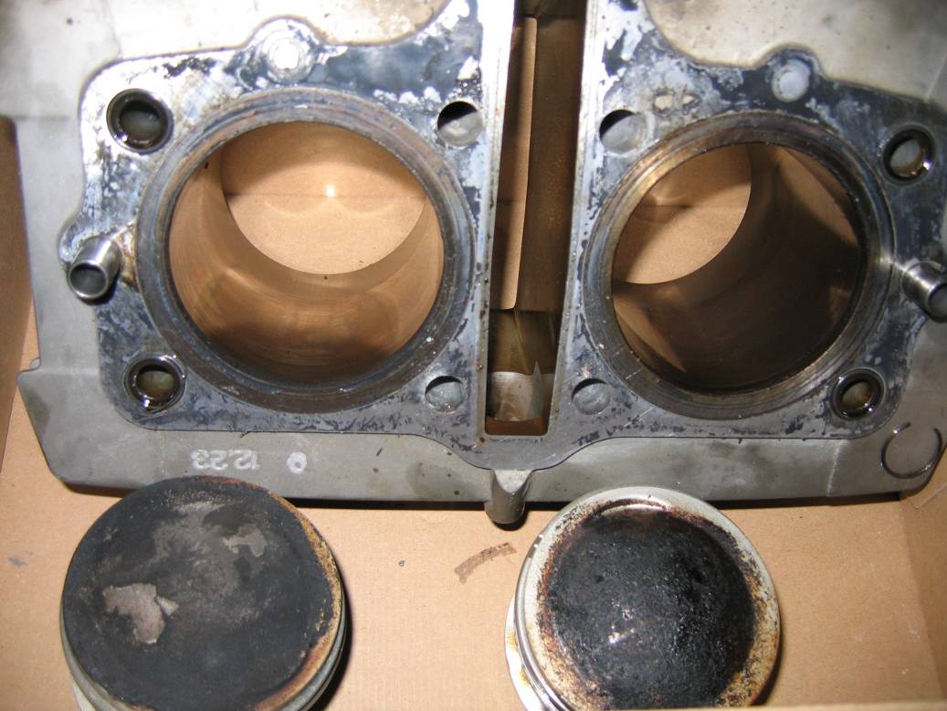 Well the compression was hideous. Even warmed up, I'd get popping and could barely make it up hills. It was terrible. Anyway, so I got the head off and decided to just go all the way and take a look at the cylinders and pistons too. It was fairly straightforward, with the hardest part being getting the cylinder head off the studs with the engine still mounted (it can be done!). Not bad for having never done any kind of engine work before. Hopefully I didn't lose too many washers into the crank case.
