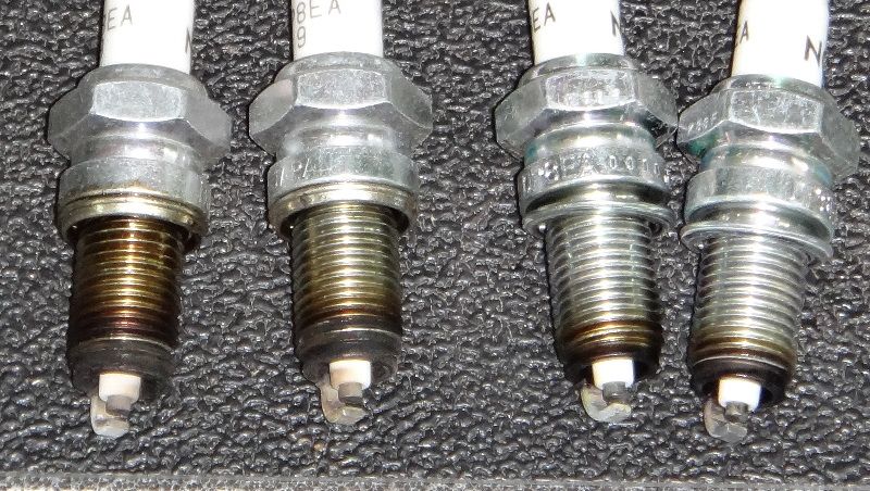 Suzi L, R  then Phenix L, R. Onbly looks like Suzi's left plug was not in tight due to the oil up the threads. Phenix's were in only for 40 miles so not really a good indicator. And why do wrench sets skip 18mm which is spark plug size?