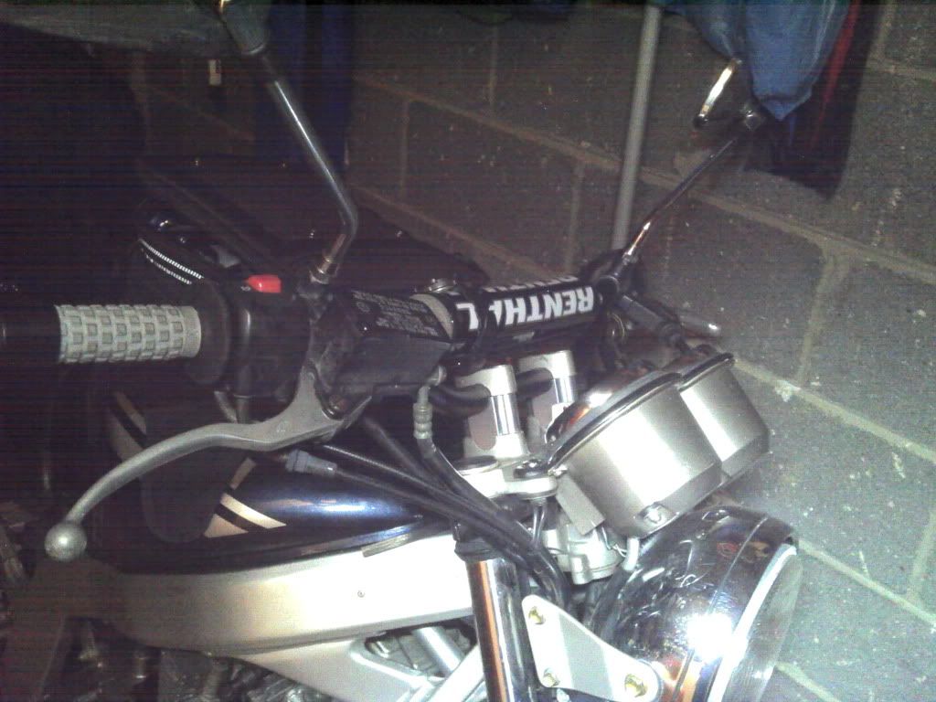 Put 30mm risers on my already higher and considerably wider Renthal CR High bend MX bars..... :thumb: