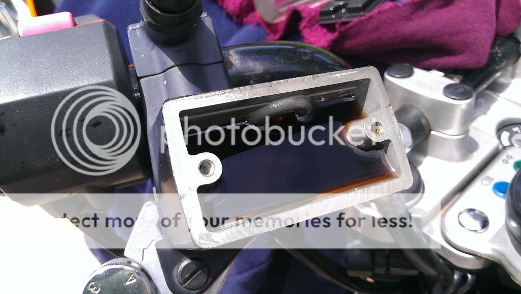 Ridden it through the tumultuous streets of London in rush hour traffic.  Also had the chance to clean the rear swingarm area and have a look at the non working Scottoiler.  That will get more looking at this afternoon if time permits.  Has the touring tank under the numberplate fitted and is a rather nice addition, but is currently not pushing any fluid through the pipework.