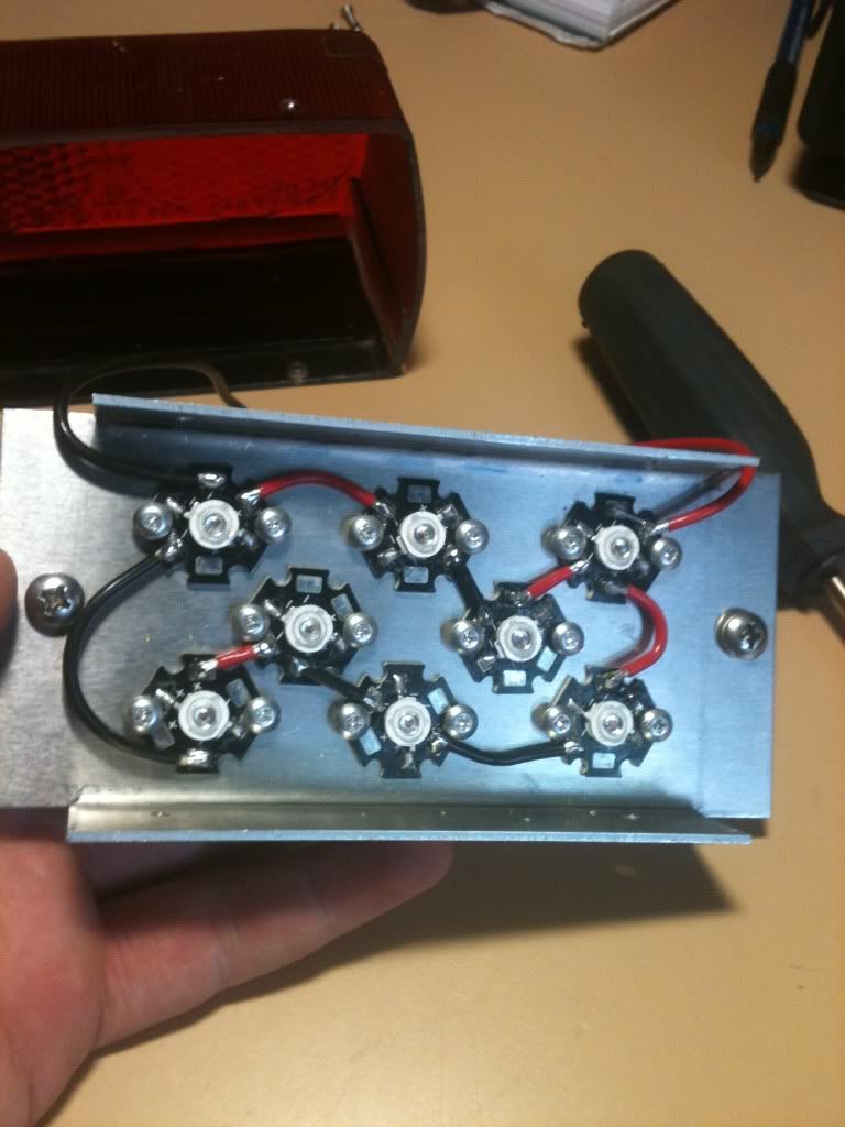 After putting LEDs in the my gauges and turn signals next up was the brake light. I didn't like the way the red rectangle we have on the back clashed with the angles of the bike's tail either.