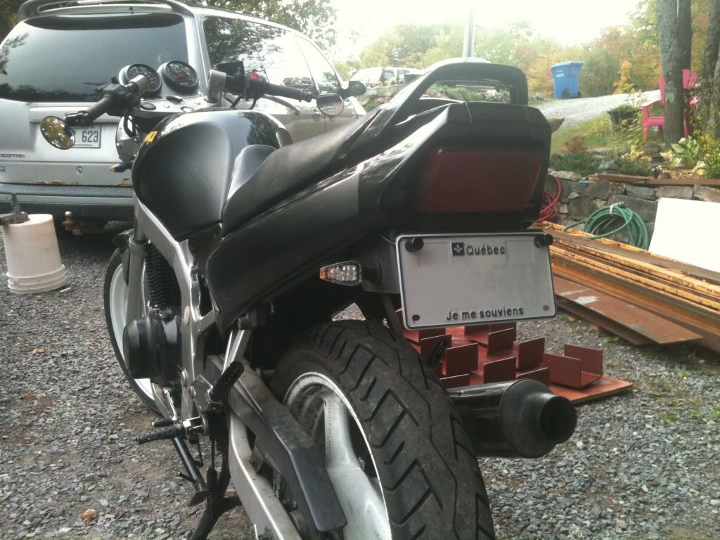 2004 F, Fenderectomy, barends, gsxr-pegs, pro grip gel covers, 15th JT sprocket, stock decals gone,custom chain guard,GSXR integrated mirrors, flush mount signals, 150 rear tire,white rims, rebuilt top end, V&H Exhaust, Custom heel and chain guard (Adidasguy)