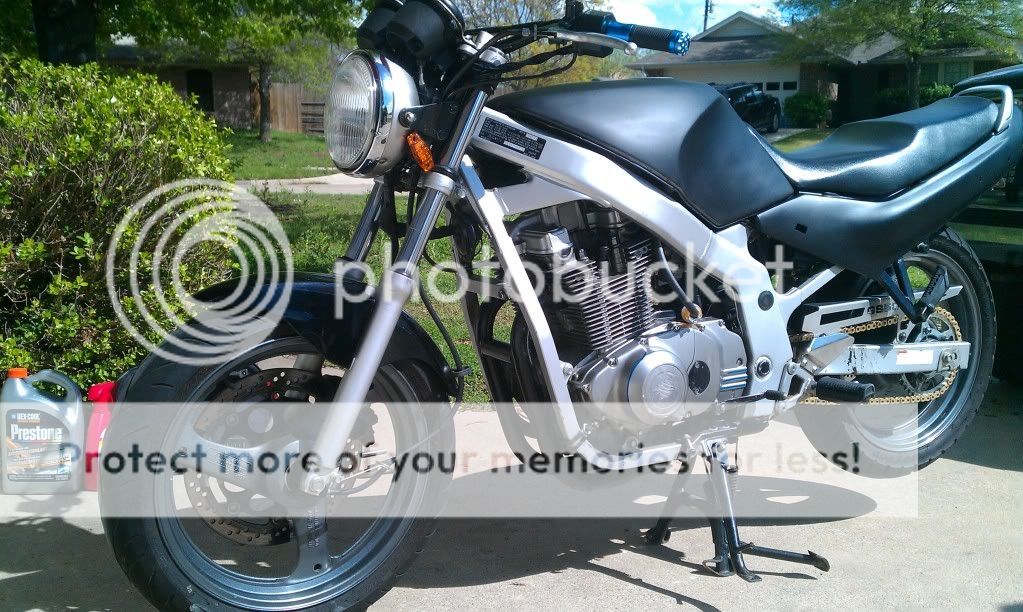 new handle bars, el' cheapo bike master almost stock but with less rise and less sweep, puts me a little more over the gas can but without adding too much more weight to my arms... :thumb: