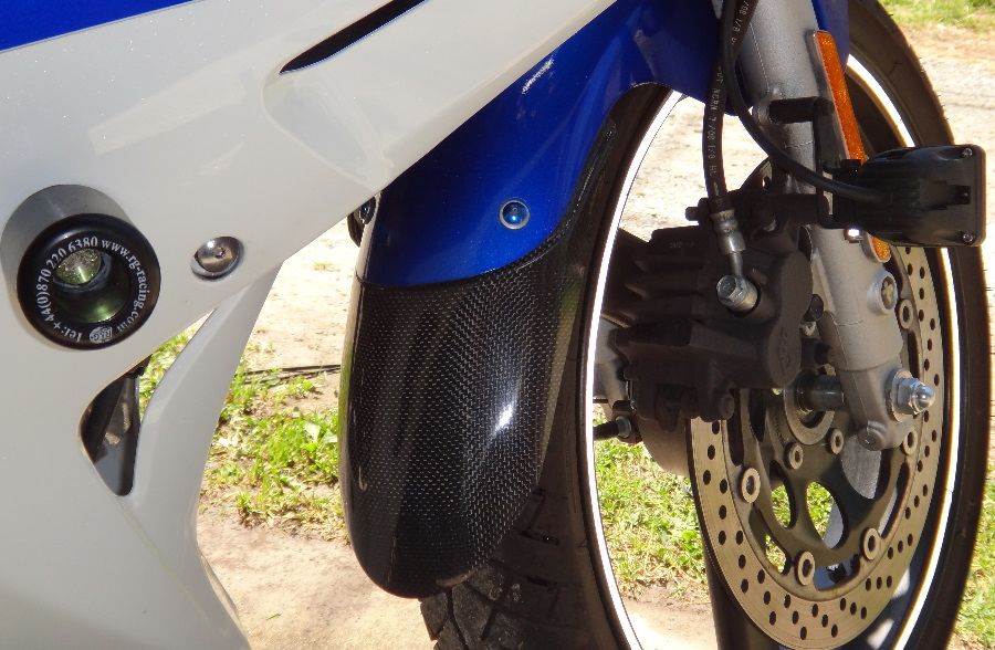 Suzi got carbon fiber fender mud flap (in place of the OEM one she had.). The mud flap goes well with the carbon fiber rear hugger airbrush made.