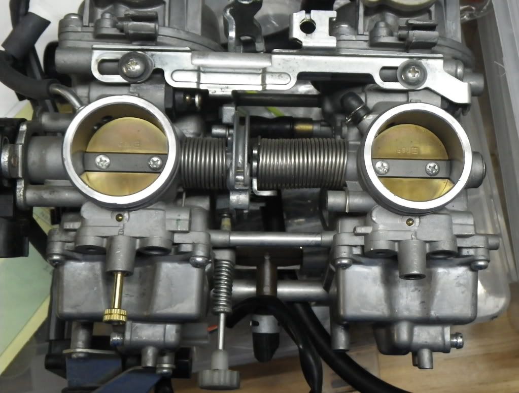 From now on when I have the tank off, I'll pull the carbs and replace the mixture screws with the one you see on the left of this spare set of carbs. It will make adjusting mixture soooooooo easy  :woohoo: