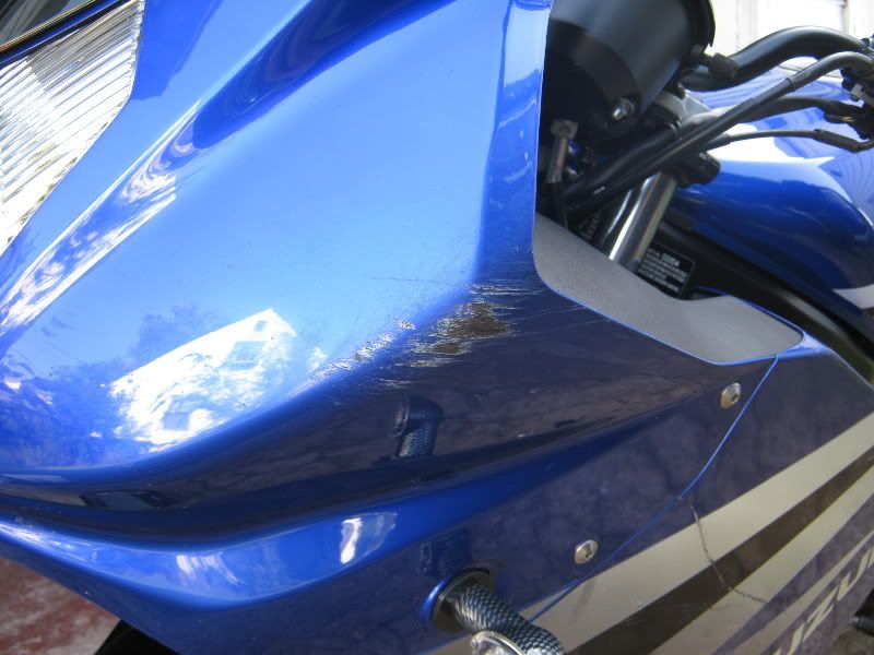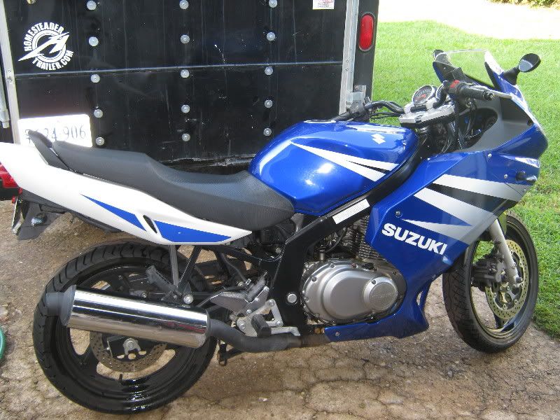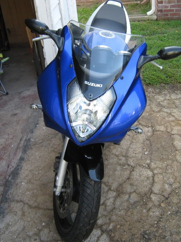 Feeling out the market, and either going to sell it, or part it. I have changed to a cruiser and haven't ridden my GS in over two years. It sat for a long time, so I pulled the carbs and cleaned them, but still cant get it to run right. It was "dropped"( so Im told) by the previous owner on the right side, and I laid it down on the left at 35 mph in the mountains. The right side fairing was replaced when I bought the bike in 2006. The left is cracked in two places that have been repaired underneath with fiberglass resin and tape. The left side of the motor is scratched up, as well as the muffler. Before I put her up she ran great and was a joy to ride, I just prefer my cruiser now, my wife does too. (she always thought I'd kill myself on the GS!)  :icon_lol: