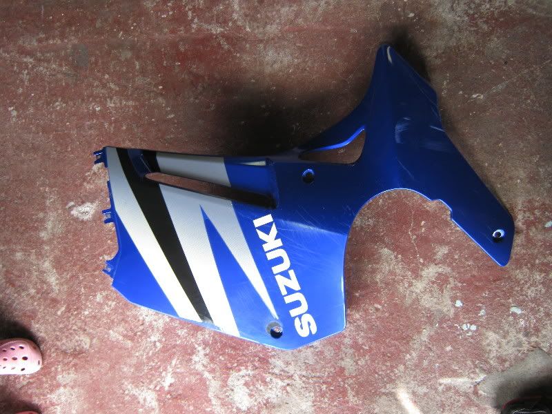 Cleaning out the garage today and I found a right side fairing from my 04 that was on it when I bought the bike. It has been scratched, but the seller gave me a NIB one to replace it. So Ill sell it, or Ill trash it. Structurally it is good. just cosmetic. If anyone needs one, let me know. I dont want a whole lot for it, and if I cant sell it, Ill just toss it.