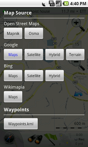 With Mobac you can download Gigabytes of maps from those very same FREE sources online, stitch them together, and dump to your ANDROID powered phone for later use. Maverick will use those cached tiles and the GPS to show you just how lost you are, and even the TERRAIN between you and civilization again. Find a water tower, a creek bed, or just a cool canyon road you didn't know about !