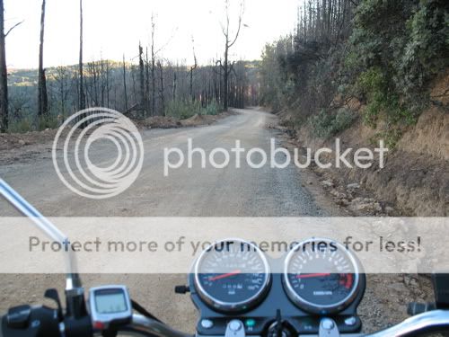 If you can imagine an ATV trail or single-track that's about the same surface composition as that road but skinny and the occasional fence post or tree branch to hop over, that's the extreme that the GS will see. My 650GS buddy has no knees left so he can't stand on the bike anymore ... too many years of downhill skiing and dirt-biking. Anywhere he will take his GS, I'll take my GS. Nice and gentle. My days of hitting hard trails hard are twenty years behind me. Strangely enough, having had the pleasure of doing almost every kind of riding there is, I don't miss the extreme stuff as much as you might think.