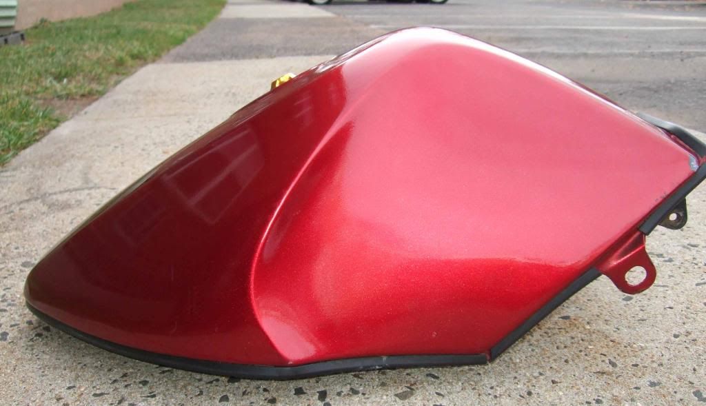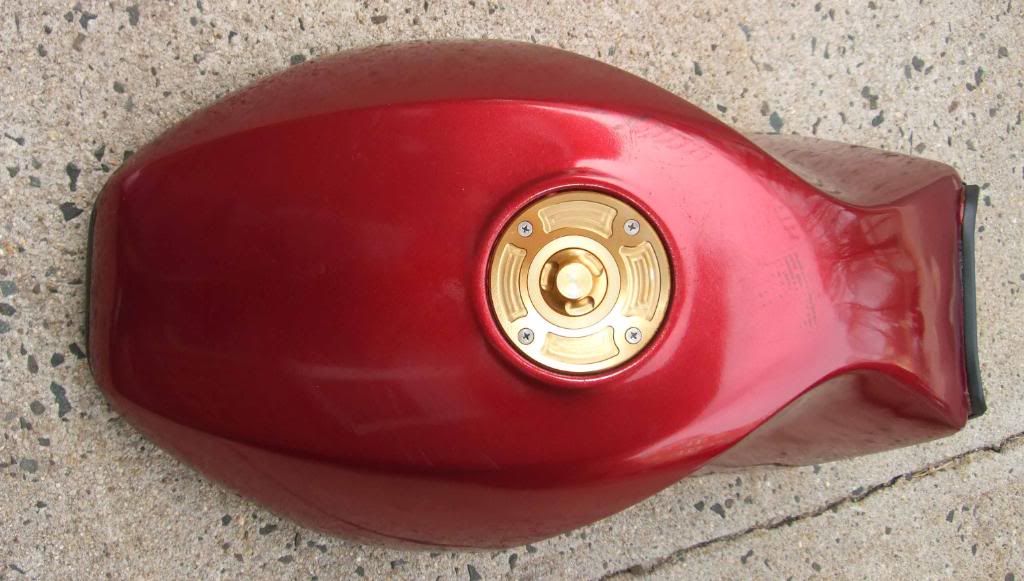 I am selling a tank that I bought from cboling on this forum a few months ago.  I never used it because I got a good deal on a newer tank two days after I bought this one.  The tank is Kreemed and has no visible dents.  There are a couple of small paint chips and it appears that when it was shipped to me, the newspaper it was wrapped in rubbed off on the tank around the gas cap.  Not sure how easy it is to remove, I haven't tried.  Both imperfections are visible in the pictures.  I can sell the tank with or without the gold keyless gap cap.  Asking $100 plus actual shipping charges but will consider any reasonable offer.