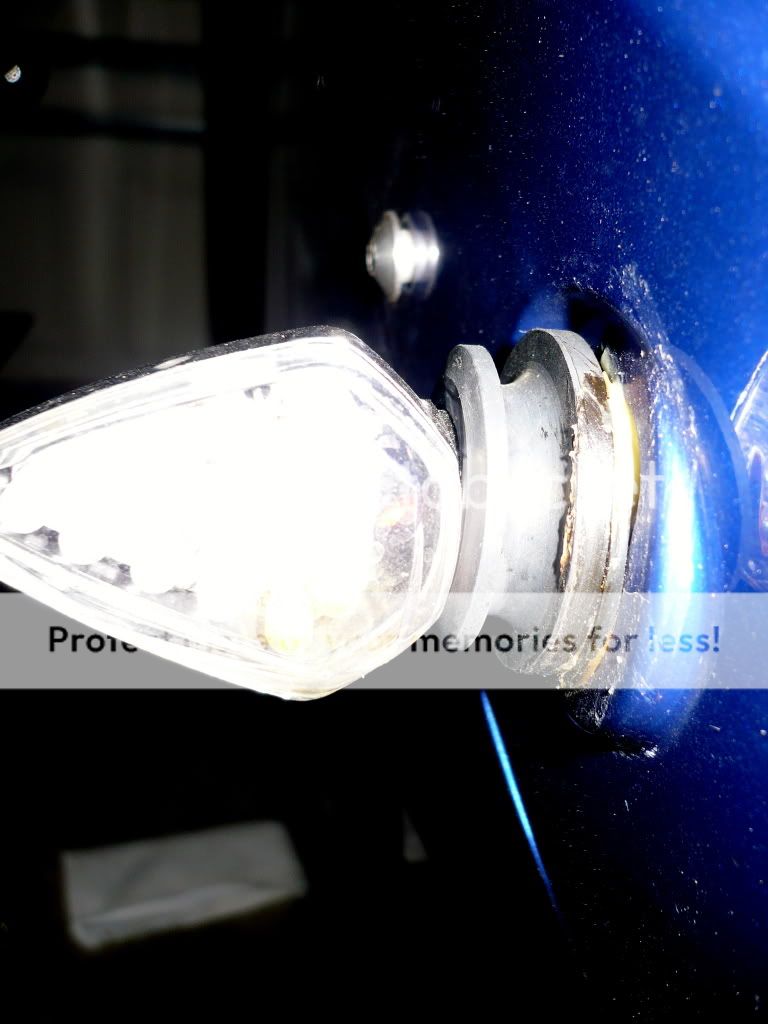 I got a couple of LED blinkers laying around for free if you want them. Not the best but will work in a bind. This is what it looked like on the bike. Just not quite as shiny!
