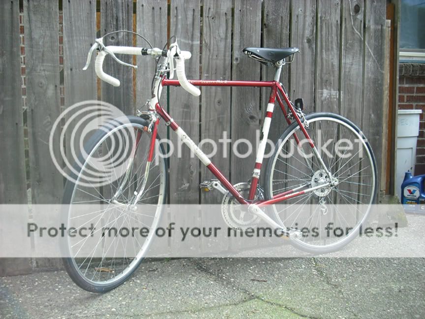 I had a bike in highschool I absolutely loved. I wish I could remember what it was because I'd love to have one again. Got it at an auction towards the end of the night, nobody around. It was yellow. I remember my dad saying something to the effect that it was a "french raching bike". I know that isn't a technical term but back then, I didn't care. I absolutely loved that thing. Could go anywhere on it I wanted really. I was a bit rough on tires and got  tired of replacing the tubes so I eventually went with a solid innertube set up for both tires. It seemed to ride so much better after that. Anyways, I'm rambling now and really have nothing to contribute to this thread other than to say, nice bike.  :thumb:
