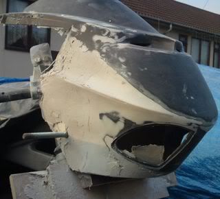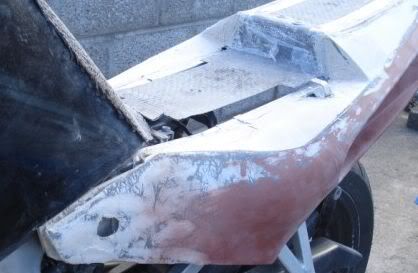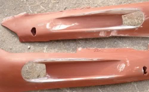 Had mold of rear spoiler, layed up section, cut in two, re profiled to suit exhaust/ belly pan area.