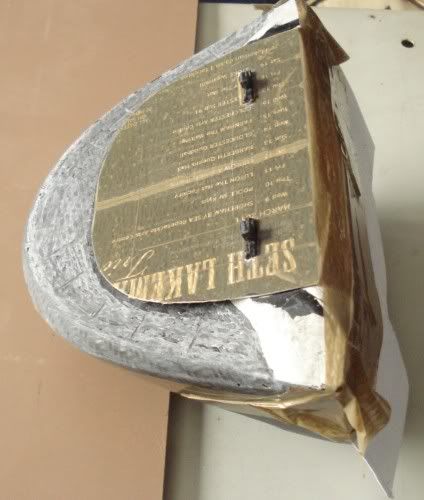 Found couple of Lucas covers. Made template with saucepan lid, sealant and silver foil to take impression with fibreglass.