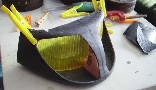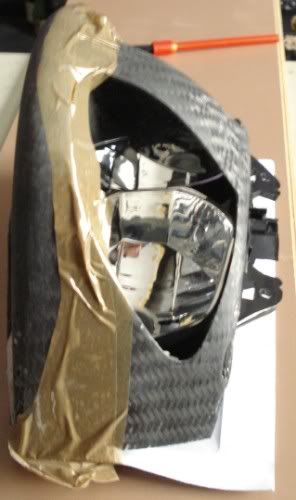 Heated BMW light protector, bent round light housing, took impression of inside.