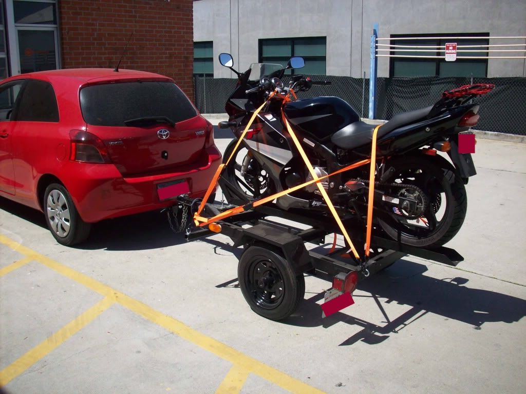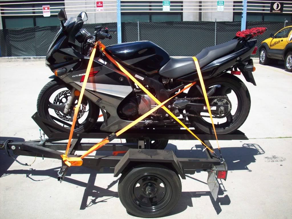 I used this trailer on my Toyota Yaris towing a GS500 but is stresses me out to drive Yaris towing motorcycle 3,800 miles to East Coast. Trailer is currently built for 2 bikes however extremely easy to change back to carry one bike.
