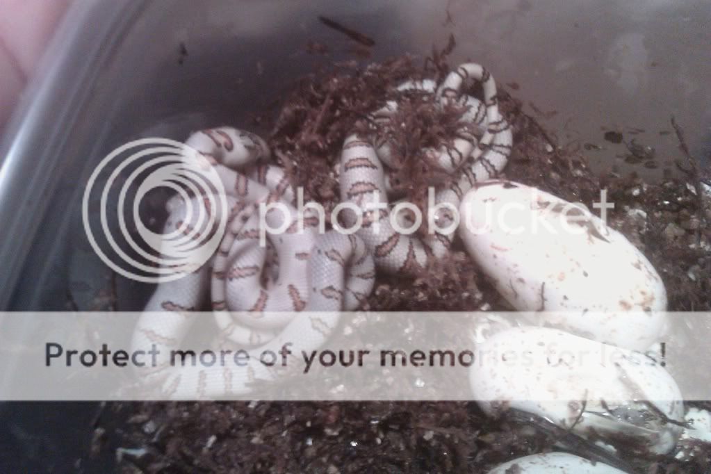I've been taking care of variable kingsnake eggs for a member on this forum (Adfalchius) while her and BaltimoreGS go on their cross country trip.  Well, BaltimoreGS and Adfalchius left yesterday and the eggs hatched.  She's pretty upset that she wasn't here to witness it and even joked that she was coming back home. :D It's quite an experience watching these little guys/gals leaving their shells.  Right now there are about four snakes out of their eggs and three more attempting to escape.  I believe there are ten eggs, so we're having success.  She wasn't even sure if any of the snakes would hatch.