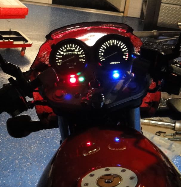 All the indicator bulbs are switched out with the 74x led bulbs (appropriate colored LED for each jewel) and then a full wave rectifier for the turn signal...