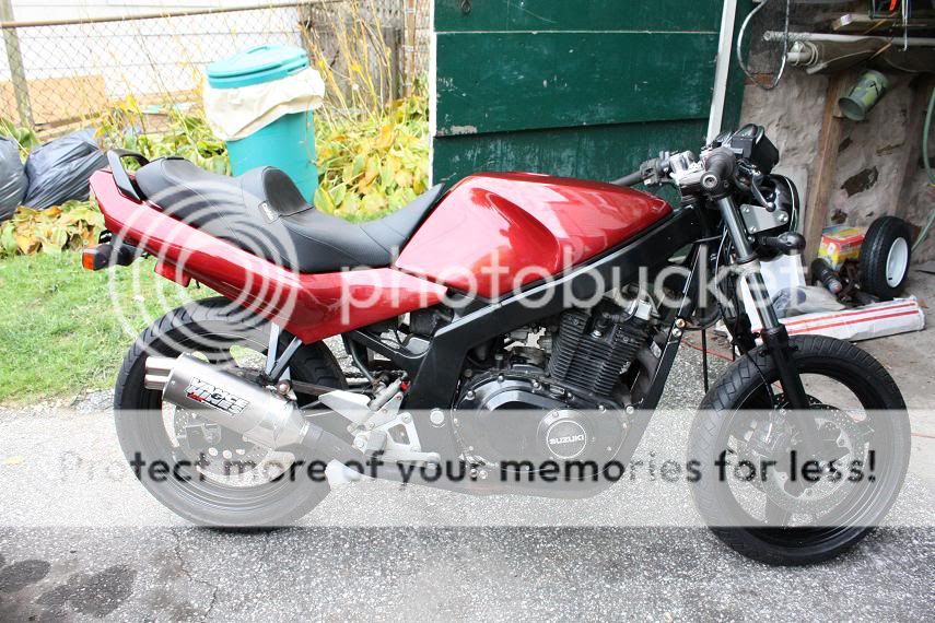 k&n air filter,pro grip gel grips,removed grab handle,pro grip carbin fiber tank pad,14/45 sprockets RK X-oring Chain, Kat rear shock swap and Kat rear wheel swap 160/60-17 Shinko raven rear 120/60-17 front matching set polished and painted rims