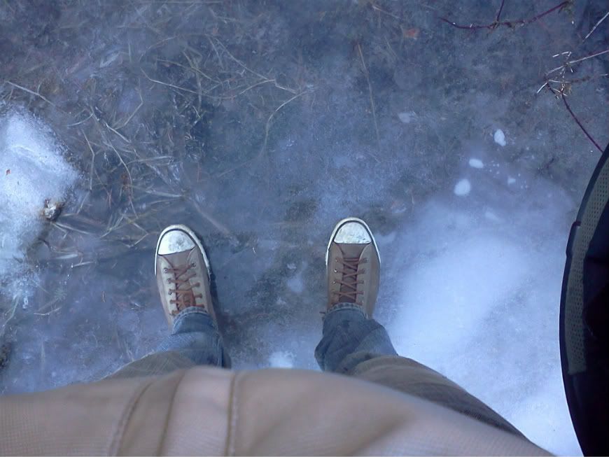 I didn't feel up to the hike, so I took a break from riding; walked in the snow, found some ice. Which is a perfect time to show off my half-ATGATT practices. Yeah yeah... Youth and stupidity go hand in hand.