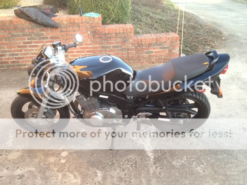 Excellent condition "Blue Book" is $2300 with the fairing.  Maybe $1500 without the "vibration".    Unfortunately, you won't get your money out of the Acewell or Katana FE (unless you sell it to someone who knows how much better it is than stock).  Might be worth it to you if you spend the $70 or so for a replacement seat from Pinwall on eBay.  Exhaust too.  If you can make it look like it hasn't been down you might find someone who will fall in love with it!