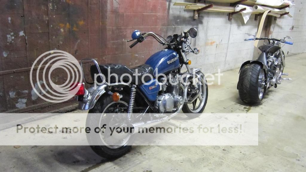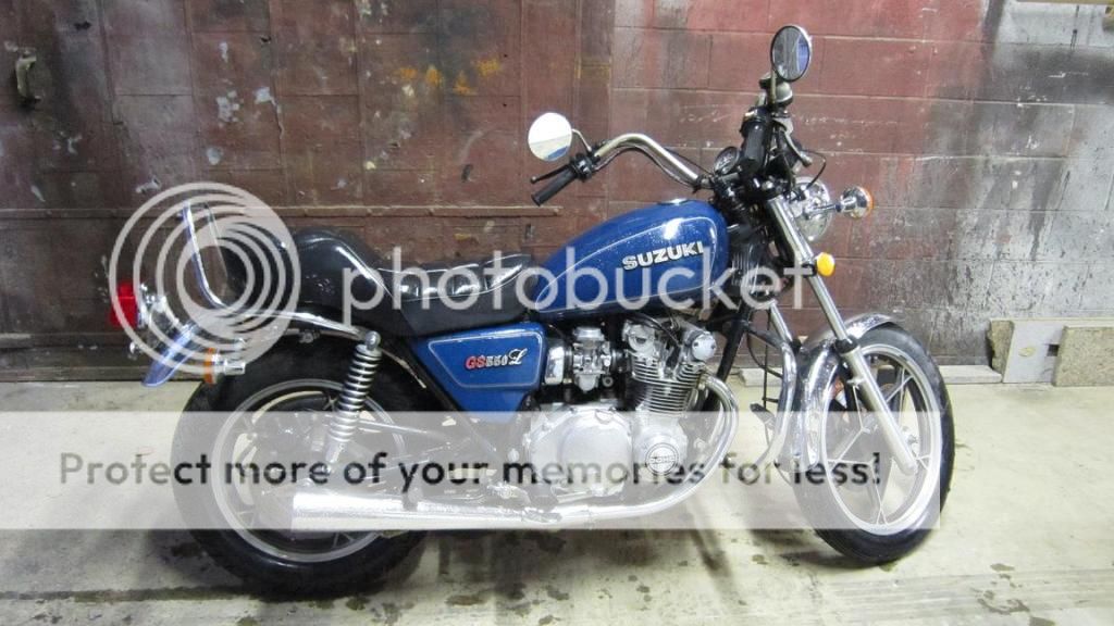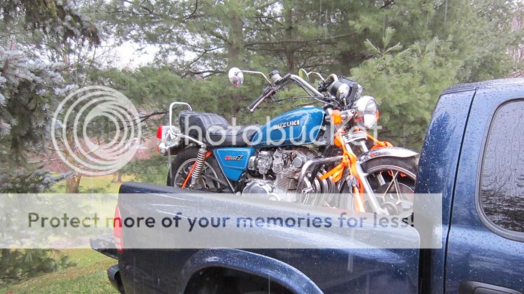 Another winter project (though this one is a GS).  It's a 1980 GS550L.  There was a car blocking Adfalchius' garage so I couldn't stow it away as planned.  Then it started to snow.  My buddy Piglet was moving a project of his over to a warehouse space we share so I hauled it up there.  It started to rain/snow on the way.  He was pissed that his toy got wet, I don't think it will hurt mine   :laugh: