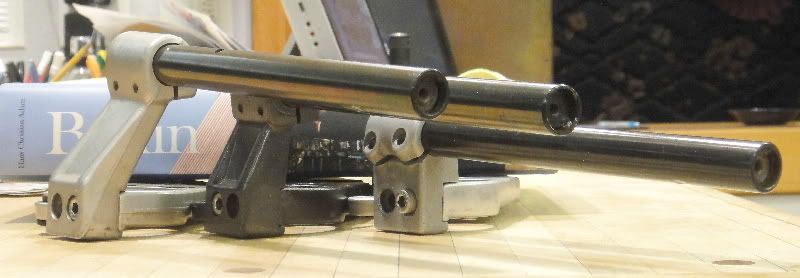 On the right is the 1989 clip. It is the shortest of all three. It is easily identified by the 2 screws that hold the bar are on the back side. The European ones have the screws on the front side (which you will see in later photographs).