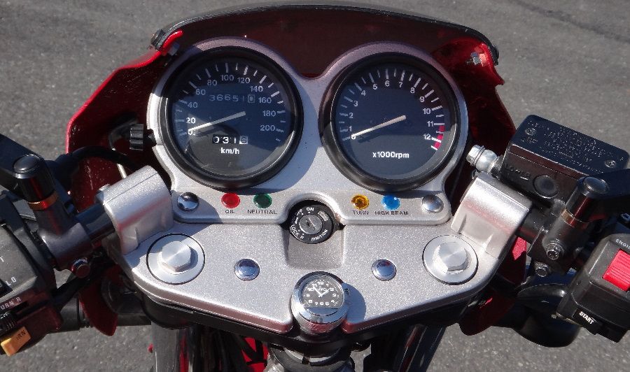 Ooh, forgot to mention vibrations. If you put clipon bars under the top triples, so they're mounted straight to the fork tubes, you'll get a good bit of vibrations through the bars. It's a considerable difference from the normal handlebars, or even 89 clipons or suburban machinery bars. The stock handlebar mounts have rubber bushings under them and it damps out pretty much all the vibrations that will otherwise shoot straight through the handlebars. If you keep moving it's not too bad, but if you're just cruising, your hands can start to go a little numb.
