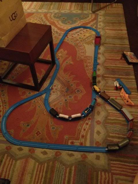 HAHAHA! That was actually Leo, my 4 yr old (5 as of last saturday)...oh the boy things start so early. pee pee everywhere, lol. He actually had tons more track but that's all he made that morning. Later that night he doubled the layout.