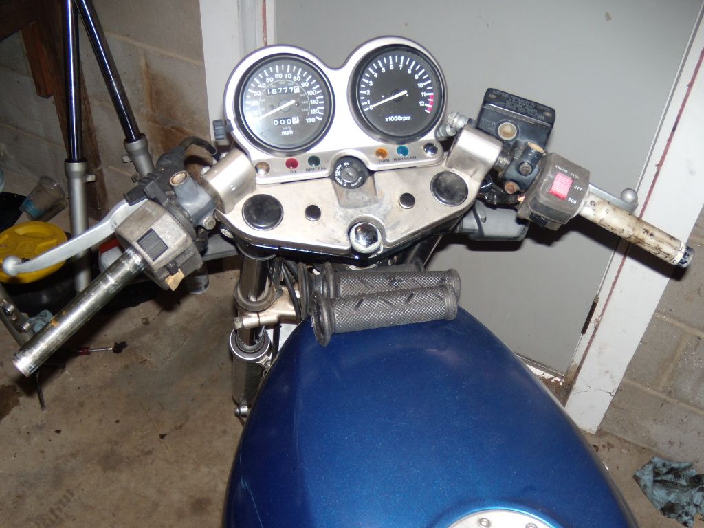 So far I have already removed the headlight fairing and belly pan. Also I have changed the handlebars from the standard style to clipons from my 89.