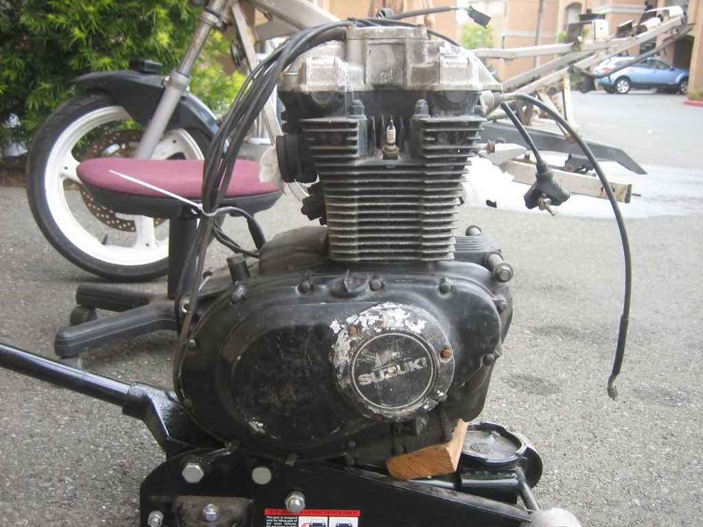 Coming eventually: 541cc with 78mm Wiseco pistons; K&N Lunchbox; Vance & Hines; 40 pilot / 147.5 main jets; Progressive fork springs; 15W fork oil; Katana 750 shock