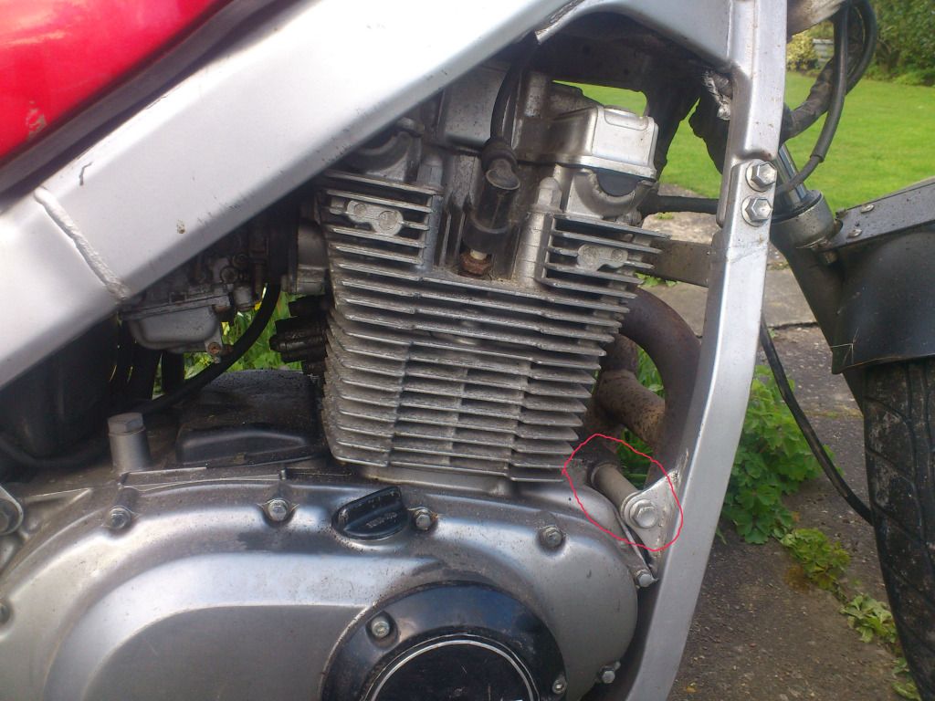 Hi all, I'm in the process of stripping my GS500 but having serious trouble with the bolt iv'e circled in the picture below.