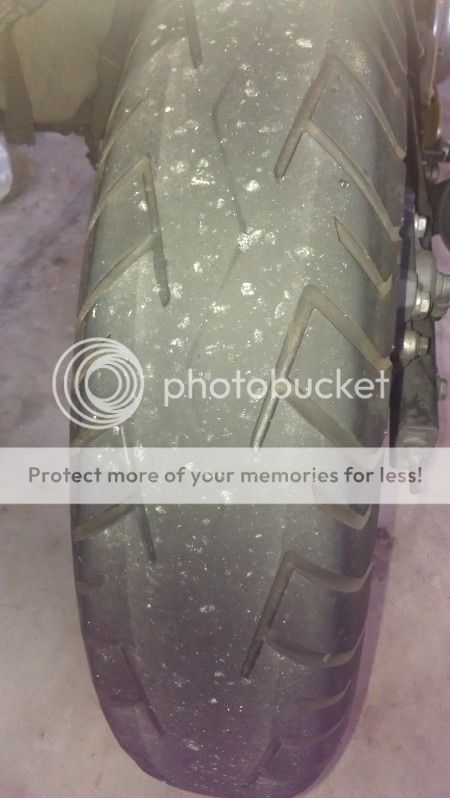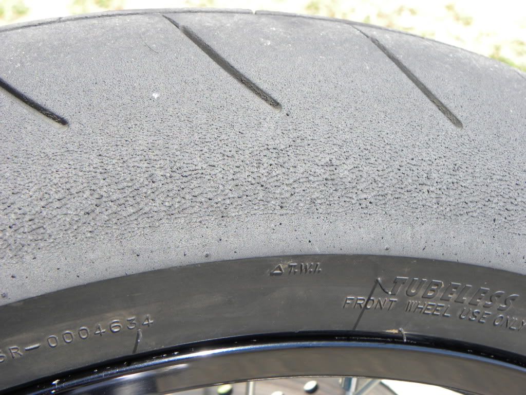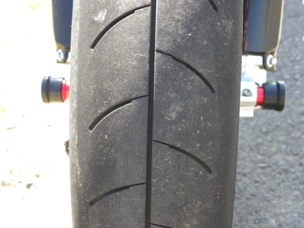 My SMR chews up tires like nobody's business!  This is from a hot trackday last year at Beaverun in Pa.  New Michelin Power Pure rear and Maxxis Presa grooved slick front at the beginning of the day...LOL