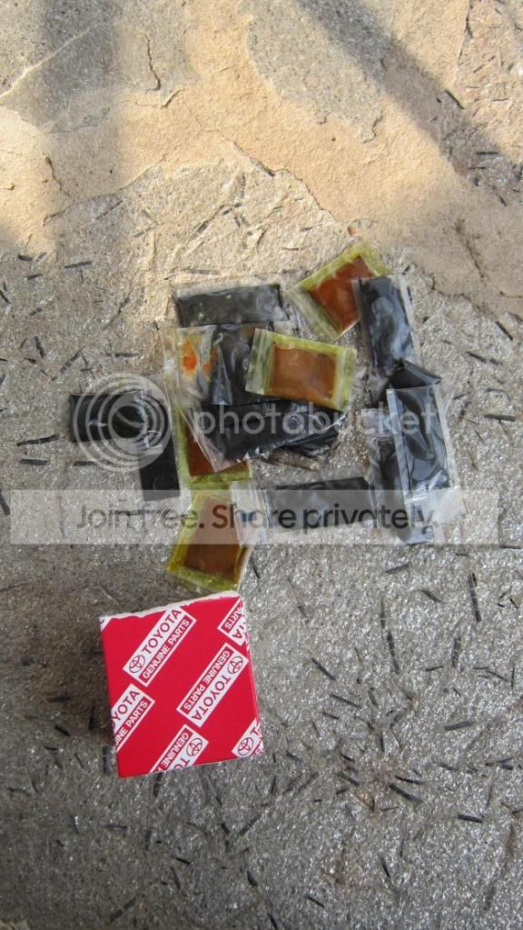 Toyota must use different suppliers for the brake pad shims, some come with black goo while others have copper colored goo.  I have an aerosol can of silicone paste that I use on shims.
