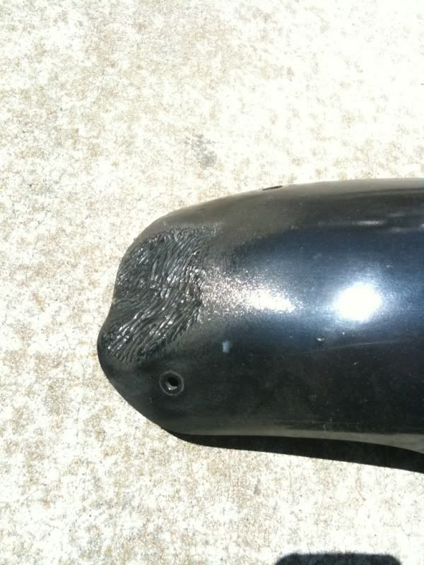 Here is what it is replacing. Melted rear of the old mud guard and no mud flap.
