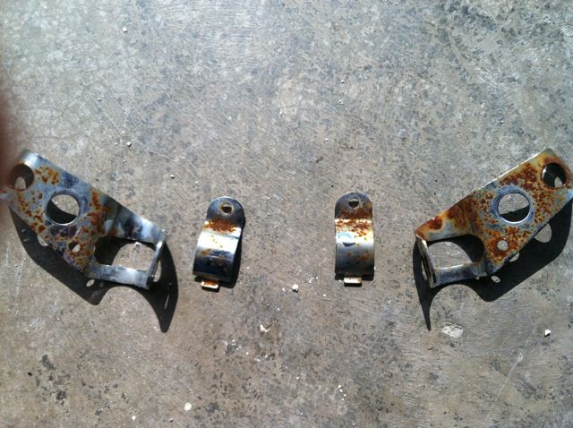 Anyway, to today's work. There were some random bolts and things around the bike that had some nasty rust on them so I took those out and wire wheeled them clean. The biggest offender was my headlight bracket...
