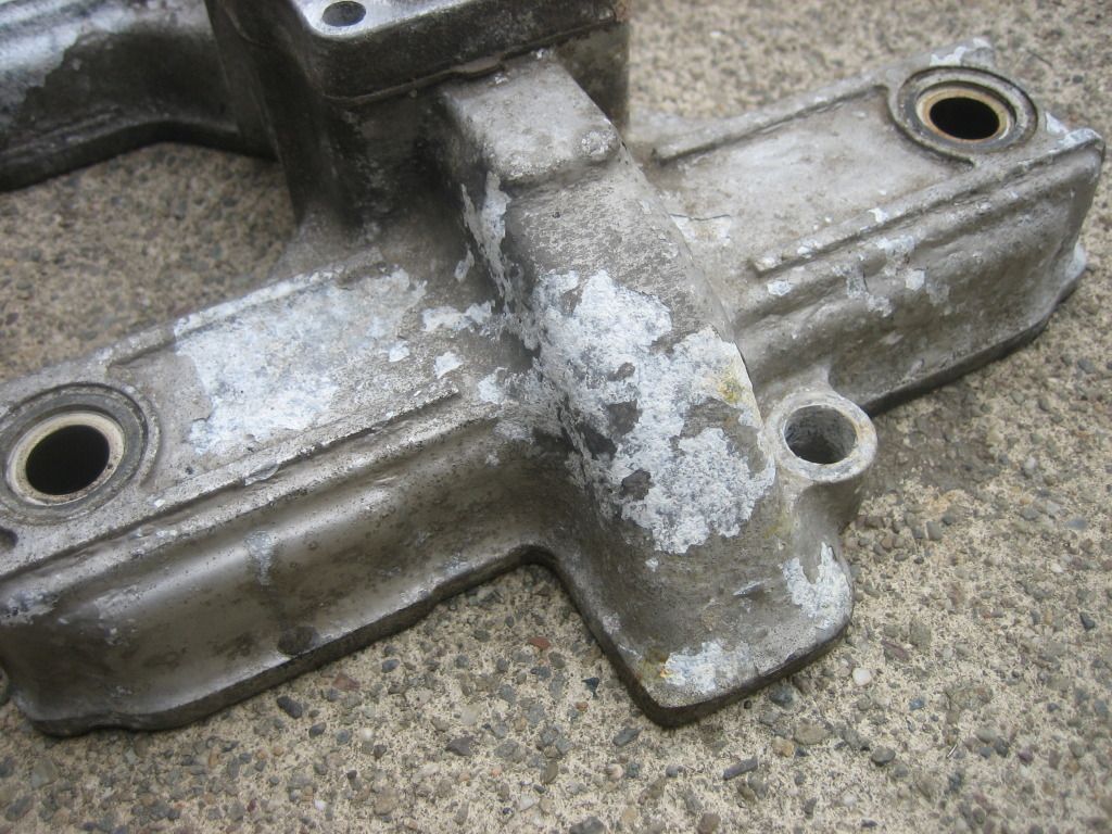 Valve cover looks to have been painted at one point, the paint has been flaking and the metal has been corroding.  I decided to take a grinder with a wire wheel to it, but it was just too big and aggressive.  I ended up taking much of it off with just a wire brush.