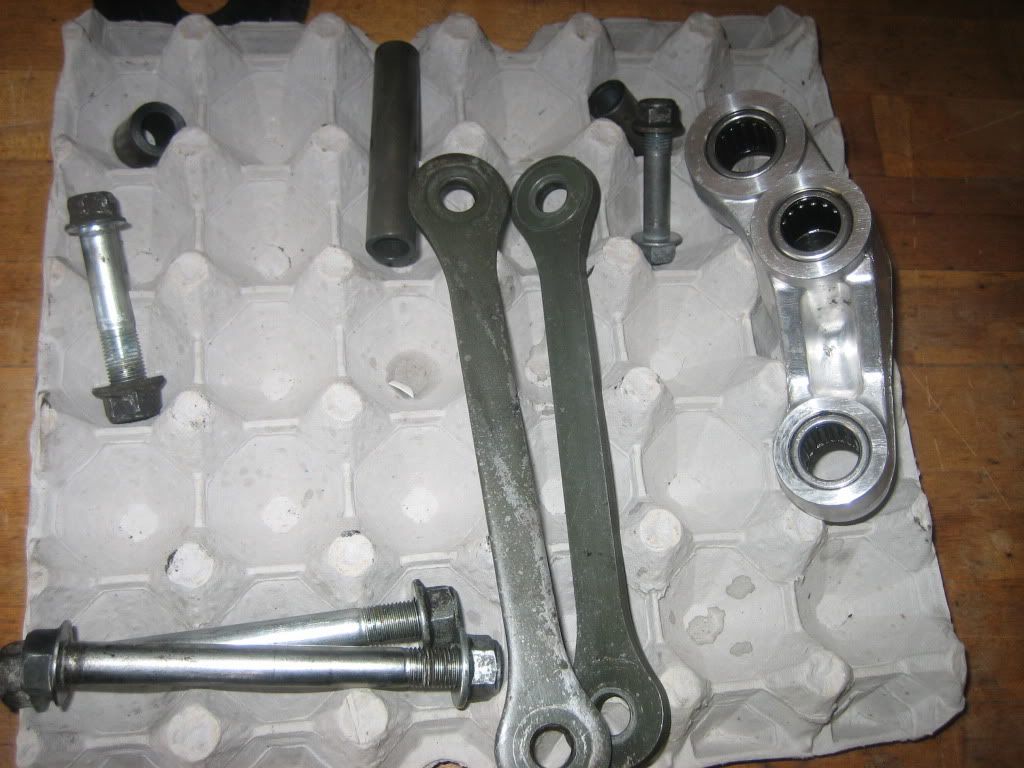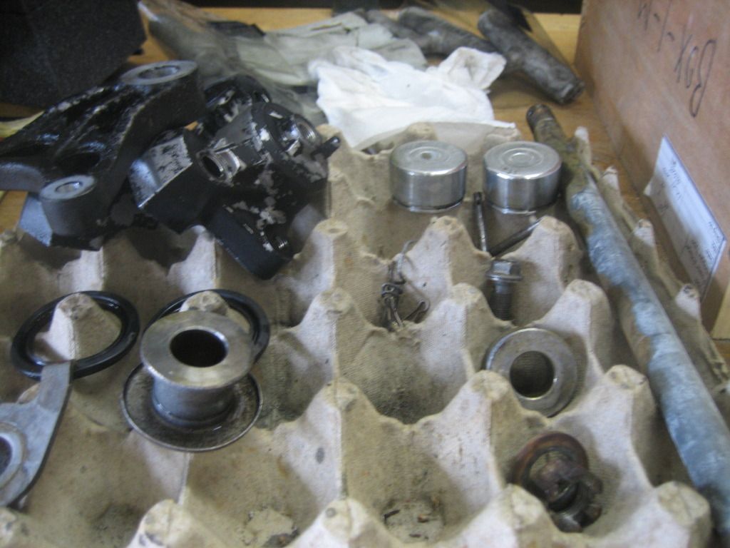 After disassembly, massive cleaning of all parts being resued began.  Here is all the suspension linkage cleaned up