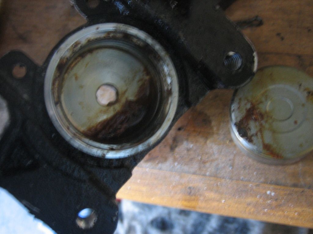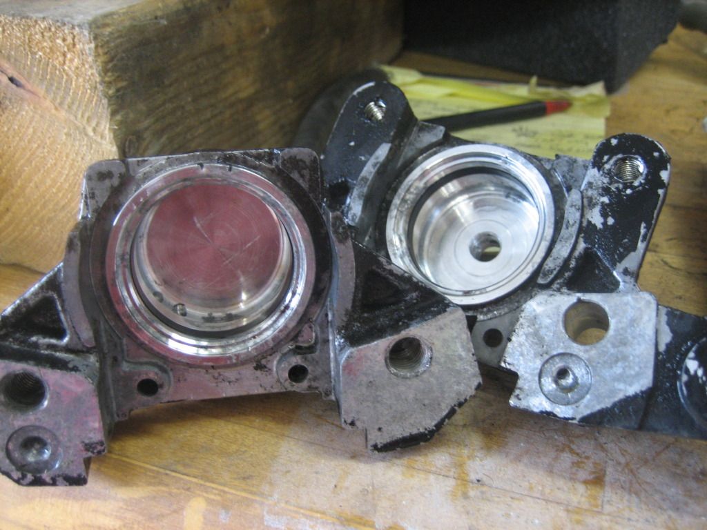 Took apart the rear brake.  Last piece before I can put the rear end together.  Pistons completely stuck, not moving.  Had to use channel locks to pull the pistons out.  They were however in pretty decent shape.  Into the pine sol they go.