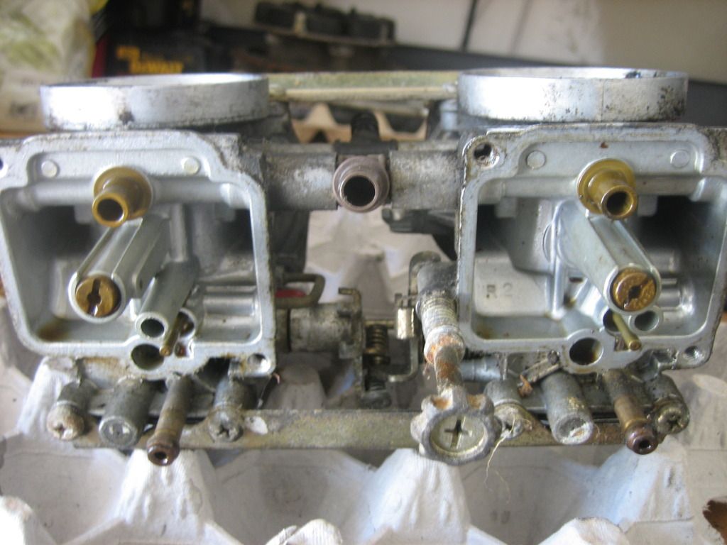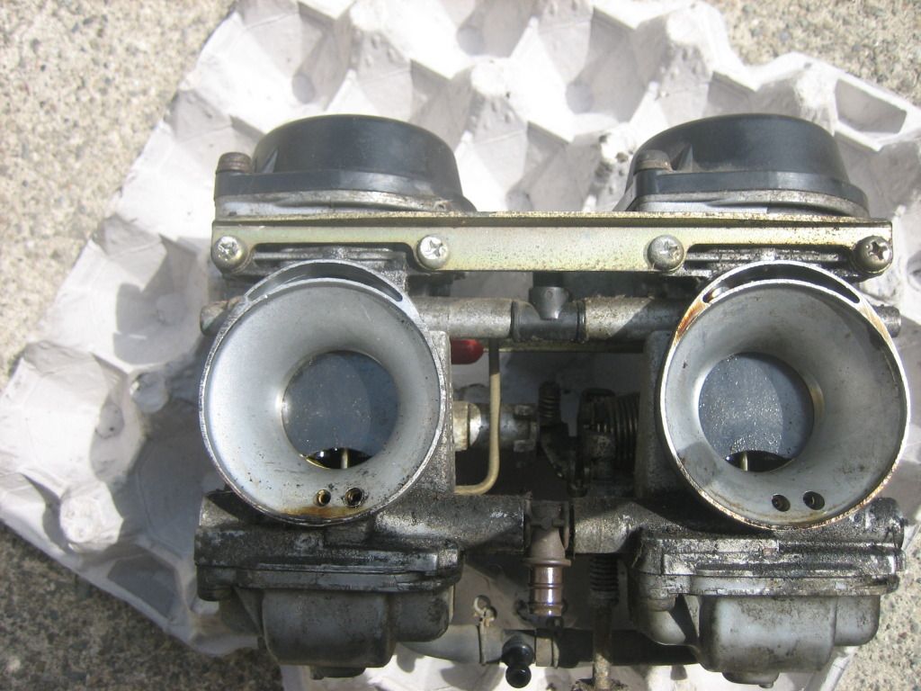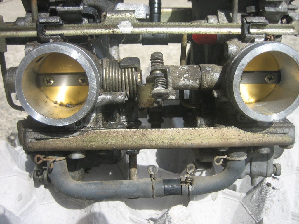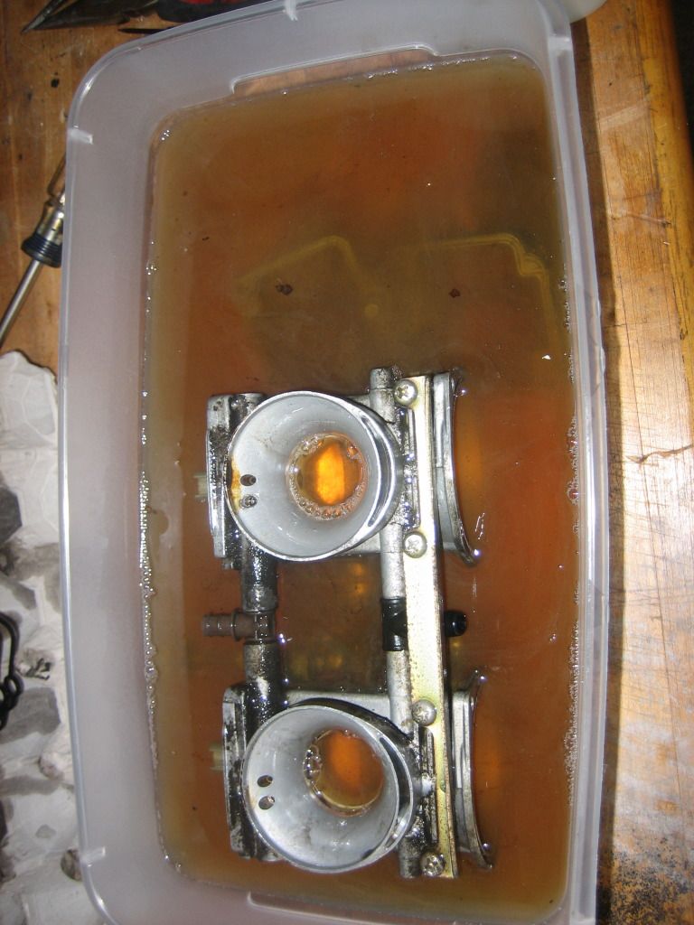 Also there is still some oxidation left of the carb bodies, but i did not expect the solution to do much for that.  Im pretty happy with the way they turned out, only thing I wish I had was a basket.  Fishing out all the little jets and bolts was a little time consuming and hoping I did not loose anything.