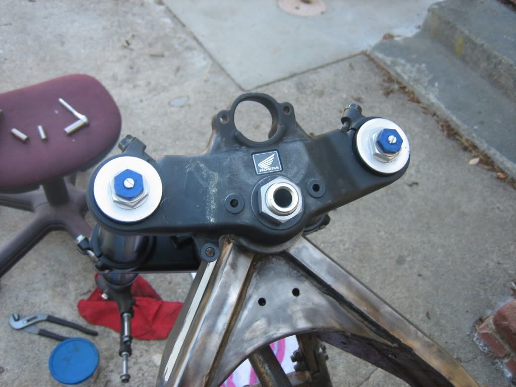 An interesting note about the front end.  Rather then doing the gsxr swap that seems to be popular, I looked for something with less secondary processes to make fit.  As we all know the gsxr swap requires a stem swap which means more work.  I went on the All Balls racing site and used their cross reference tool to find bikes that utilized the same stem bearings.  The cbr600rr fit the bill.  There is a pretty wide range of hondas that use the same steering stem bearings.