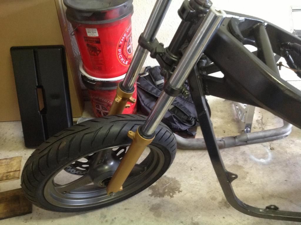 Front shocks with progressive springs, new Suzuki fork oil, and new fork seals 150