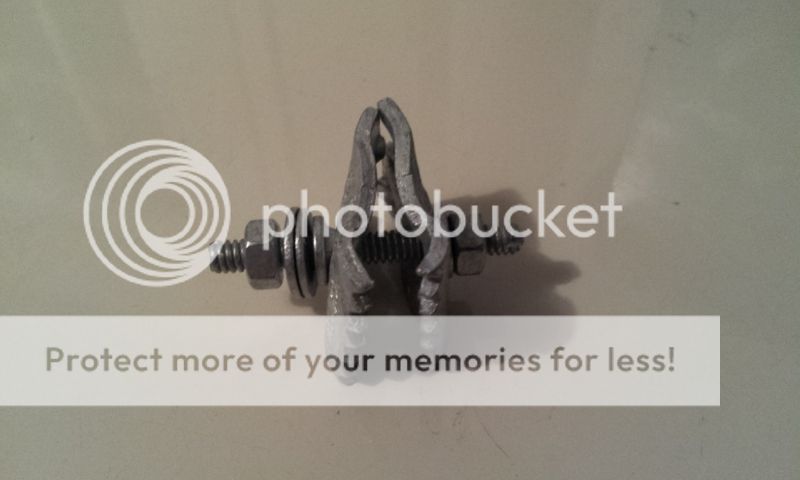 Ground clamp - connects ground/lightening  wire to a pole in the ground.