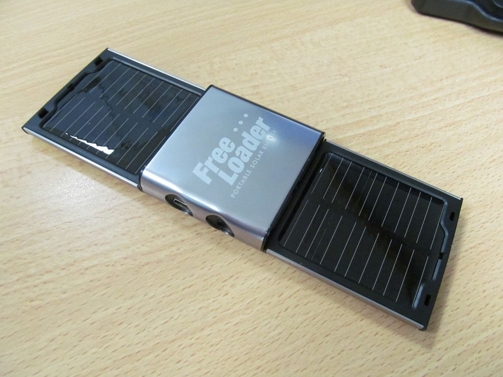 This little puppy has an internal battery can charge off a PC / USB charger or the solar panels which clip out.