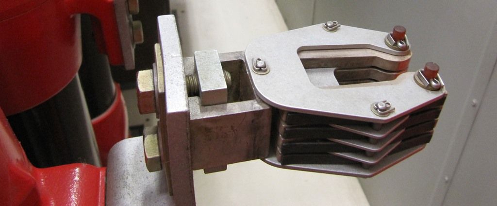 Elmojo has it - it is a busbar conductor grip.  It is attached to an itty bitty vacuum circuit breaker which is rated 3.3kV @ 1200A