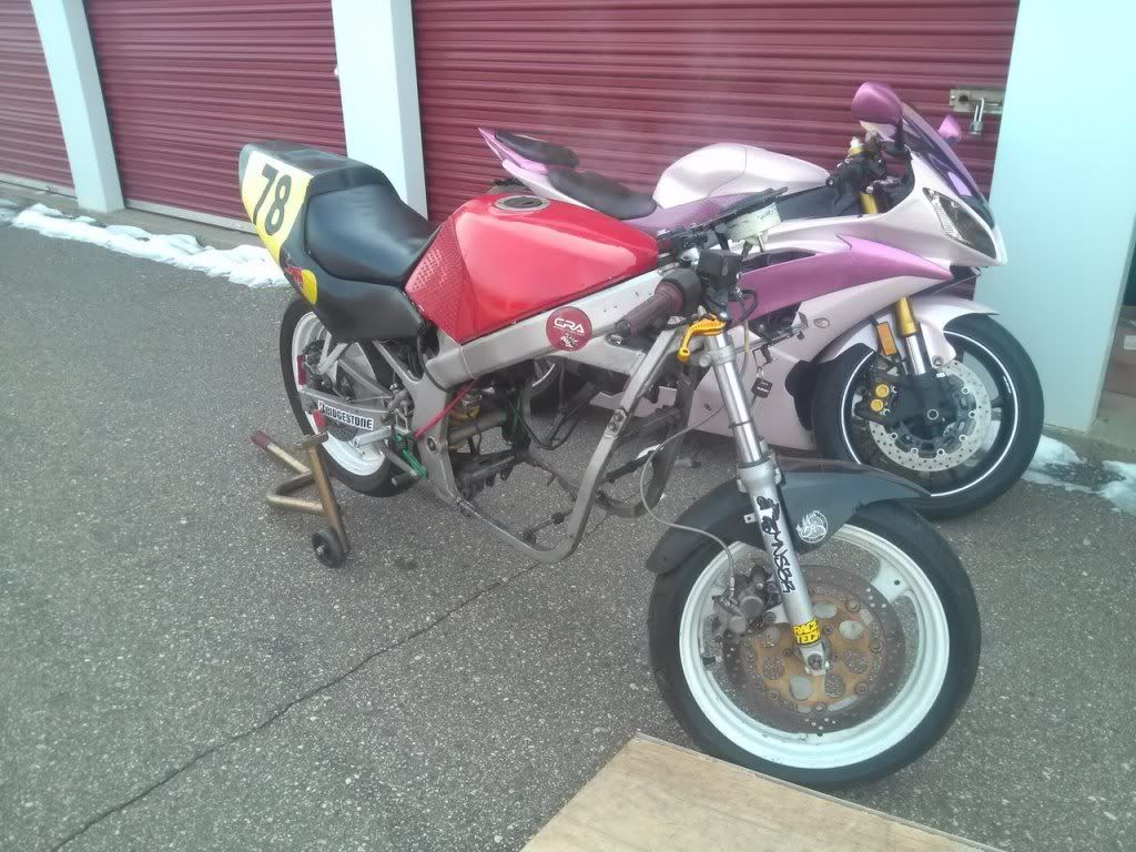 Looks good.  Im in the process of turning mine into a track ride as well.  Dont trip too much on the wiring, you end up cutting out ALOT of it.  Any pics on the tach and holder?  Mine has a cbr600rr front end on it and will need to make a plate to hold the tach.