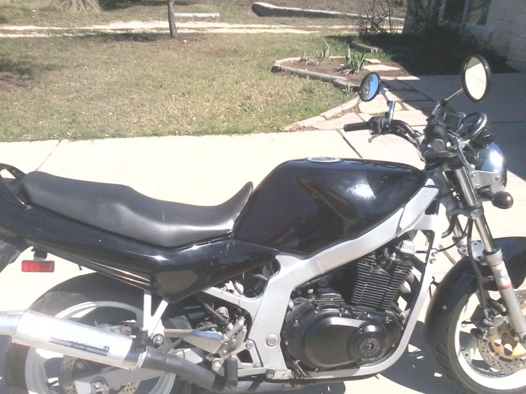 '93 GS - Clubmans - '04 tank/seat - Custom "slip" on - Airtech fender - Drag Specialties speedometer - GSXR drag bike grips - GSXR pegs - Lunchbox - Re-jet - Sold!