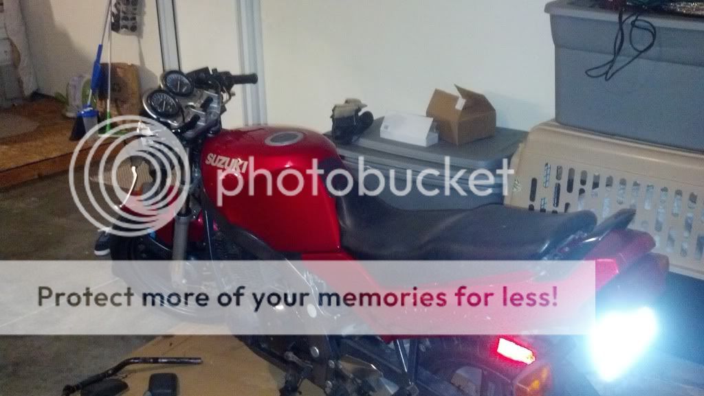 '93 GS - Clubmans - '04 tank/seat - Custom "slip" on - Airtech fender - Drag Specialties speedometer - GSXR drag bike grips - GSXR pegs - Lunchbox - Re-jet - Sold!