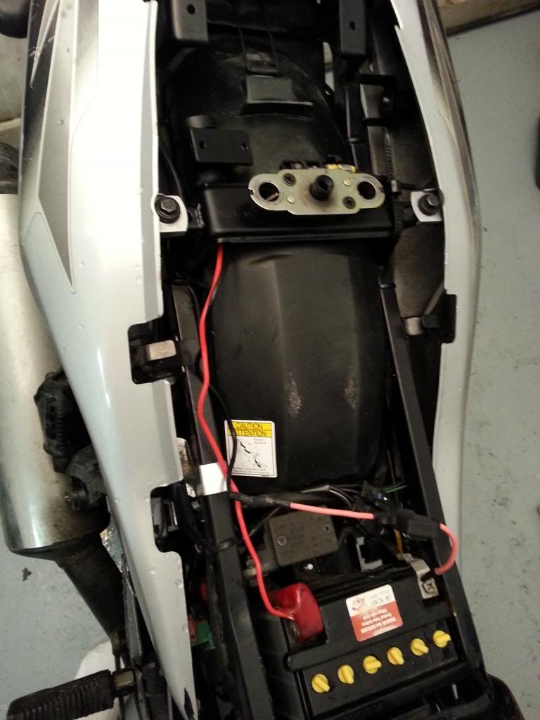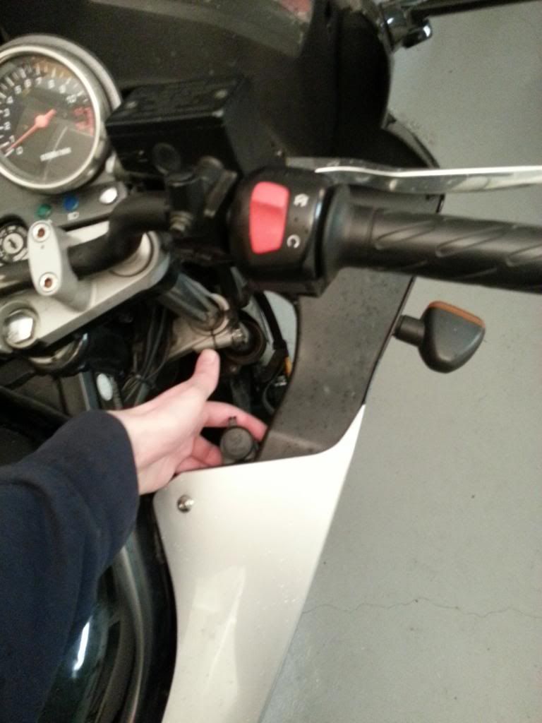 i ran a rally type camera on my gs. put the 12v socket with cap like yours closer to the battery. since i put the k&n lunchbox on it had more room further fwds. but the rubber plug is a DEFINATE.