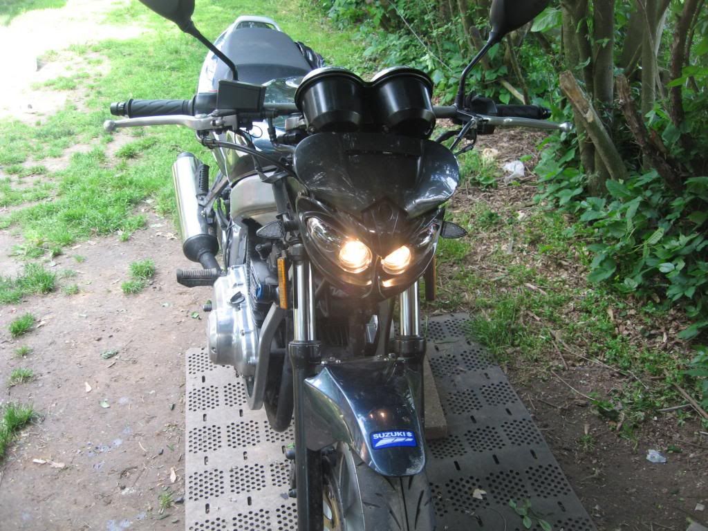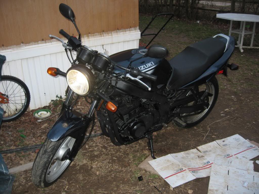 First of all, welcome to the forum! Nice looking gs you got there. 500 bucks and it ran well huh? Why did you choose to paint the frame silver? Also how do you like those headlights at night? Haha.